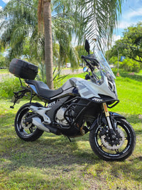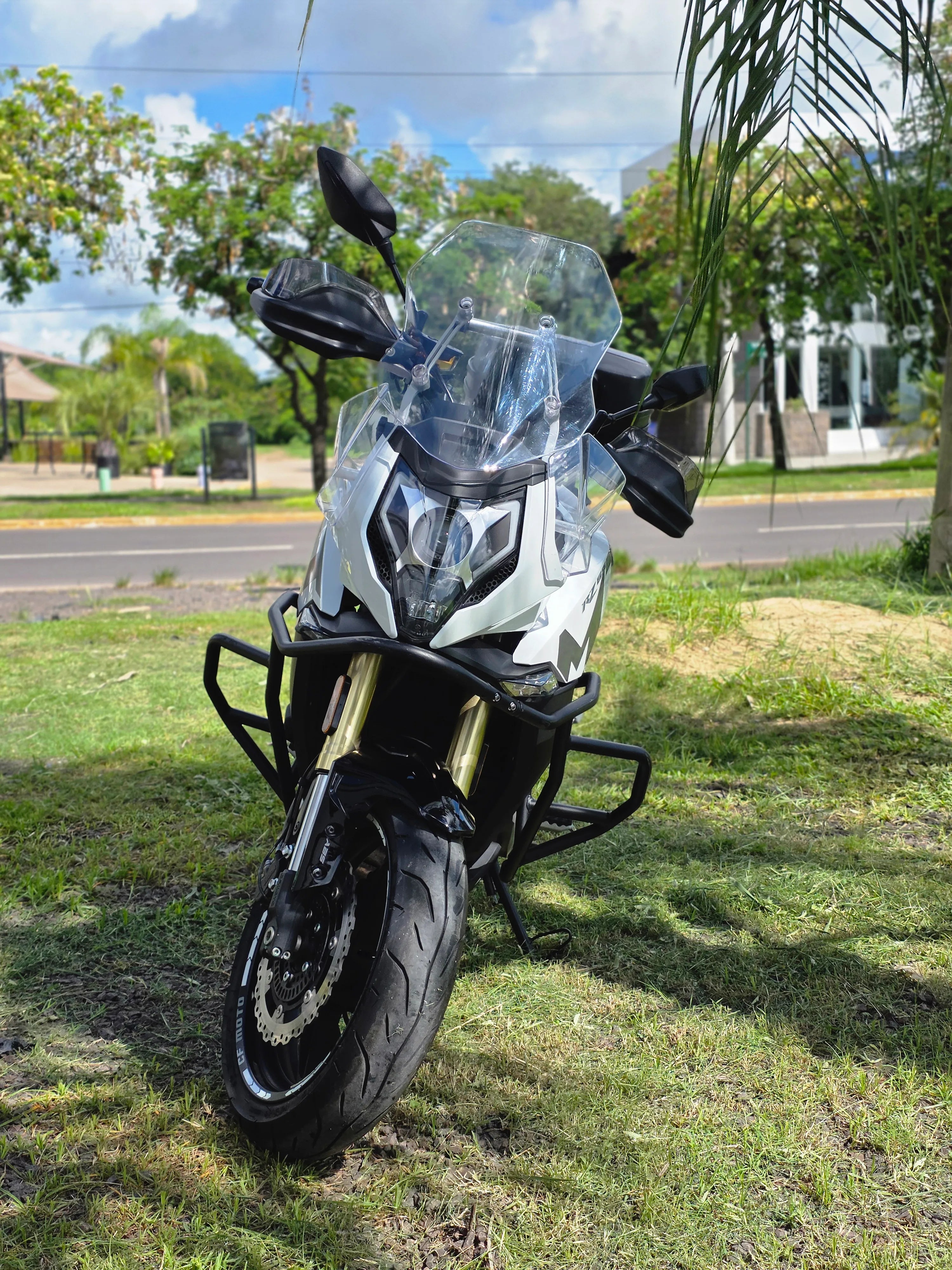 Su chasis robusto y suspensión de viaje largo proporcionan comodidad en carreteras y caminos secundarios. Cuenta con pantalla protectora, maletero integrado y posición de conducción ergonómica ideal para expediciones. El sistema de frenado ABS y neumáticos todoterreno garantizan seguridad y tracción en diferentes condiciones. Una opción confiable para aventureros que buscan explorar sin comprometer la practicidad diaria.